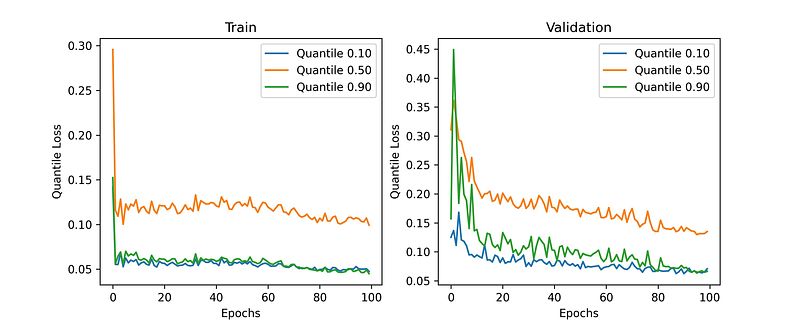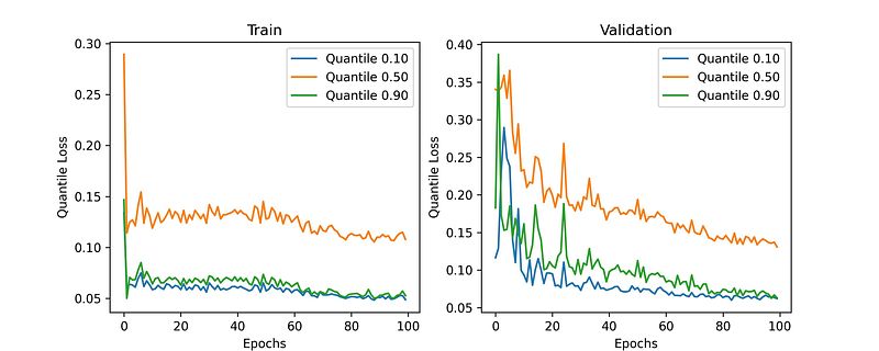 Quantile Loss (three quantiles 0.1, 0.5, 0.9) for power demand in Austin city over training and validation.